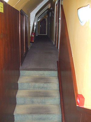 My room was on the top floor, up increasingly narrowing staircases and along increasingly sloping corridors, until I came to a point under the eaves of the building where even the tops of the doors were cut off at an angle to accommodate themselves beneath the slanted ceiling.
