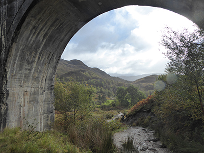 However, the reason for my visit is not location-spotting but walking. A short, but very attractive walking trail runs from Glenfinnan Station, past the Glenfinnan Viaduct, down to the edge of Loch Shiel beside the Glenfinnan Monument, and then loops back again in a circle to the railway station. The entire route is not much more than two miles in length, but it affords beautiful views of the surrounding hills, loch and countryside, and it is a walk to dally over and enjoy, not one to treat as a route-march.