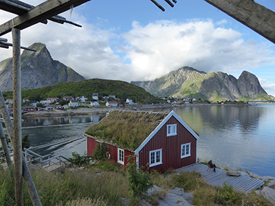 I was staying in grass-thatched cabin #15, or ‘Niels’ to give it its informal name, which jutted out over the water on high wooden stilts and had beautiful views of tranquil Reinevågen and the tall Lofoten peaks beyond.