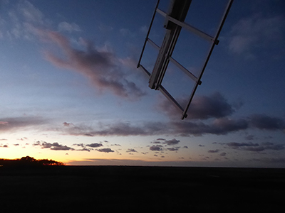 It is a lovely circular room, on the second floor of the tower of the windmill, with a private, open-air balcony surrounding, and stunning views across the flat expanse of the Cley marshes directly to the North Sea.