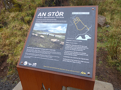 There is a choice of routes––if you can call two a choice: the left-hand path is longer with a more gradual incline; the right-hand one steeper and more direct. I am conscious that I have an additional time restraint––my return bus to Portree departs in a little over two hours––so I take the right-hand route.