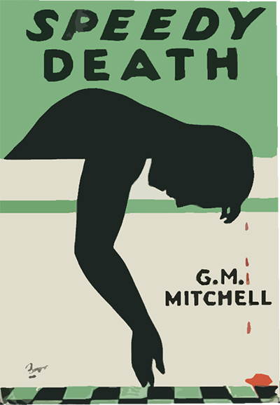 There are shades of Jacques-Louis David’s The Death of Marat in Irving Politzer’s excellent stylised cover design for the US first edition of Speedy Death, published by Mason Publishing Co. in 1932, and which depicts this pivotal moment from the book.