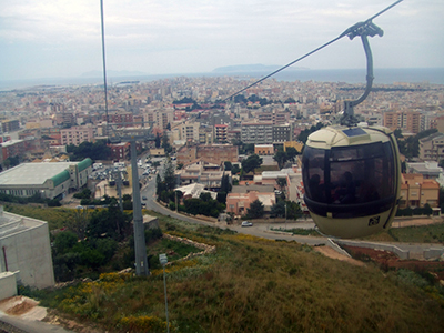 As the crow flies, the distance from Trapani to Erice is only about five miles, but the crow has a distinct advantage over me when it comes to gaining altitude and, since Erice stands 750 metres above sea-level, I decide to travel there by cable-car.