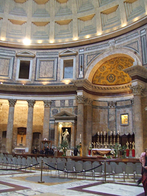The vision of rain falling inside the Pantheon was rather mesmeric; I found my mind focussed on this natural wonder rather than on the words of the service, to such an extent that suddenly I realised that there was a scraping of chairs, and the liturgy was completed. I stretched my numbed limbs and, taking the opportunity before the doors of the Pantheon were once again opened to the massed hoi polloi, I whipped out my camera, and enjoyed a few peaceful minutes of unabashed tourism.