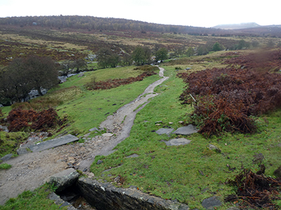Up, up, up, always keeping the fall-away slope of the gorge to my right-hand side. It is autumn – late autumn – and the colours of the gorge are predominately golden; the hue of leaf, either ready to fall, or already fallen forming a Yellow-Brick-Road litter on the ground. Below, the Burbage Brook, burbles noisily, following a rocky course, occasionally breaking into distinct waterfalls, always finding a route where I am less deft to follow.