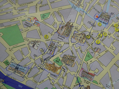 A lot can be read into the character of the receptionist by their map scribbles. It is the front-of-house version of the Rorschach inkblot test. Some of the adornments are angry marks, deeply ingrained, practically piercing the paper, perhaps indicating a deep-rooted resentment of our respective positions: paid employee and leisured guest. Others are loving daubs, suggesting a willingness to be helpful; perhaps displaying a pride in a home city; a pleasure in imparting knowledge to a new and ignorant visitor.