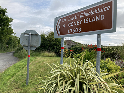 Coney Island is an exception. When the tides are favourable, it is possible to follow a route marked by 14 stone markers across 2.5kms of the Cummeen Strand from the Coolera Peninsula to set foot on the island without getting wet. When the tides are not favourable, the Atlantic is swift enough to fill up Sligo Bay and make the island inaccessible; no longer even reachable by boat, now that the regular service from Rosses Point has stopped.