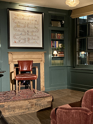 I run through my pre-requisites. Wine? Tick. Comfy armchairs? Tick. Wood panels? Tick. Inviting fireplace? Tick. Okay, there is not an elderly, bowler-hatted retainer on the front door, but the staff I met there were all perfectly pleasant; and while there appeared to be no opportunity of finding an overnight refuge there should I find myself stuck in Town after missing the last tube, most other things were looking distinctly promising.