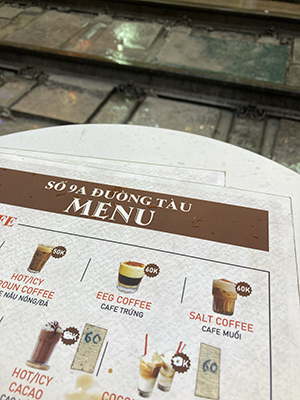 I was given a menu but, also, given no choice. The elderly Vietnamese woman was pointing to a picture of an egg coffee. From her sign language, I understood her to explain that it was a good choice on a cold, wet day. It is priced at 60,000 Vietnamese Dong. I try to calculate the conversion rate in my head. About £1.50. That is fine.