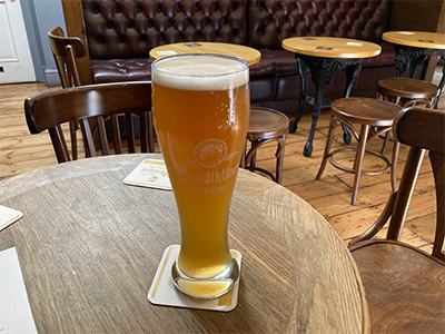 I find myself back in my usual corner, sat at my usual table, in the same position on my usual banquette, with a pint of wheat beer in front of me.